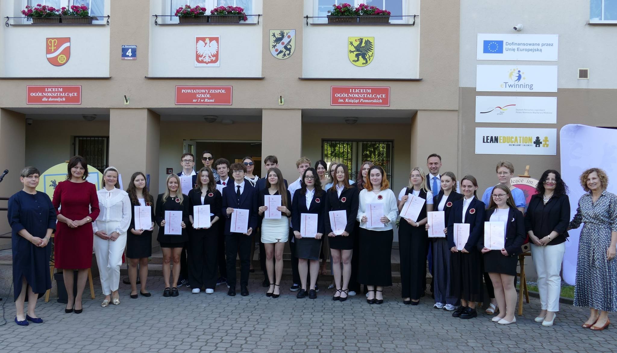 W piątek, 21 czerwca 2024, odbyła się uroczystość zakończenia roku szkolnego 2023/2024. Uroczystość tradycyjnie rozpoczęła się wprowadzeniem pocztu sztandarowego i odśpiewaniem hymnu państwowego. Następnie Pani Dyrektor, Lucyna Penkowska, w krótkim przemówieniu podsumowała kończący się rok szkolny i życzyła udanych oraz bezpiecznych wakacji. Do życzeń dołączyła również przewodnicząca Rady Rodziców, Pani Patrycja Biegańska. Kolejnym punktem programu było wręczenie świadectw z wyróżnieniem oraz nagród uczniom, którzy uzyskali średnią co najmniej 4,75. Nagrodzeni zostali także uczniowie ze stuprocentową frekwencją oraz ci, którzy wyróżnili się udziałem w konkursach i projektach. Nagrodzeni uczniowie zostali uwiecznieni na pamiątkowych fotografiach. Następnie uczniowie rozeszli się wraz z wychowawcami do wyznaczonych sal, gdzie otrzymali świadectwa promujące ich do klas programowo wyższych. Uroczystości, która miała miejsce na dziedzińcu przed szkołą, towarzyszyła piękna słoneczna pogoda wprowadzająca w wakacyjny nastrój.