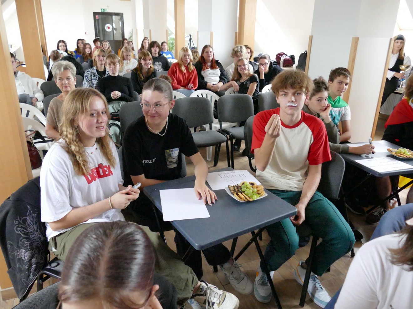 Z samego rana odbył się Turniej Języków Europejskich, w którym brały udział reprezentacje klas drugich. Uczniowie zmierzyli się z różnorodnymi konkurencjami takimi jak rozpoznawanie znanych miejsc, symboli czy muzyki, jak również sprawdzili swoją znajomość języka łacińskiego, tłumacząc popularne sentencje. Najwięcej uśmiechu przyniosła uczniom konkurencja zwana Bobbing for Apples, w której mieli wyłowić jabłka z miski wypełnionej wodą, bez używania rąk.