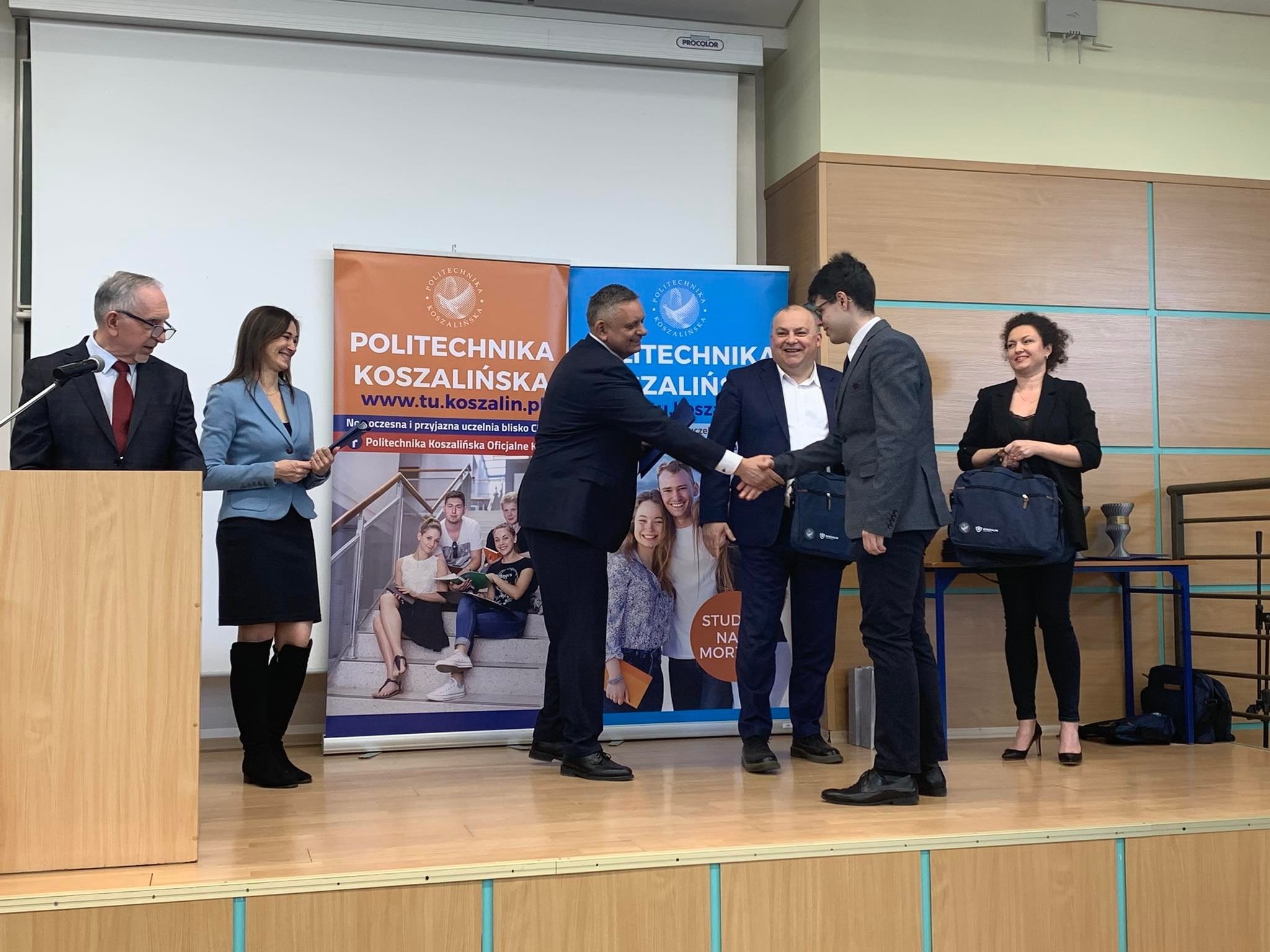 W piątek 22 kwietnia w auli Politechniki Koszalińskiej odbył się finał konkursu BIEG PO INDEKS. Naszą szkołę reprezentowali uczniowie klasy 3Bg: Oliwia Chmielewska, Tomasz Krampa, Filip Kulesza, Marcin Pucułek, Oliwia Rejman. Marcin Pucułek uzyskał tytuł laureata.