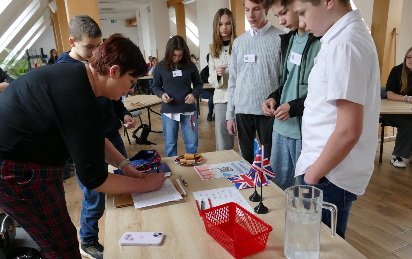 9 kwietnia 2025r. o godzinie 9.00 6 drużyn, reprezentujących 5 szkół, przystąpiło indywidualnie do testu wiedzy na temat Szkocji i Anglii.