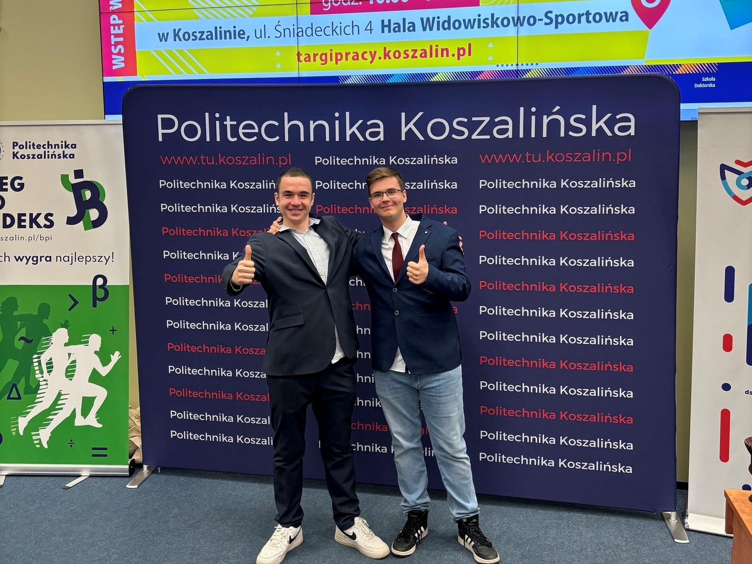 Nasi uczniowie Konrad Walter i Heorhi Yurchenko zostali finalistami konkursu Politechniki Koszalińskiej BIEG PO INDEKS. W piątek 6.04 2024r. na uroczystej gali z rąk prezydenta Koszalina i pani rektor Politechniki Koszalińskiej odebrali dyplomy, nagrody i gratulacje. Prezentem dla szkoły była drukarka 3D, która wzbogaci wyposażenie jednej z pracowni.