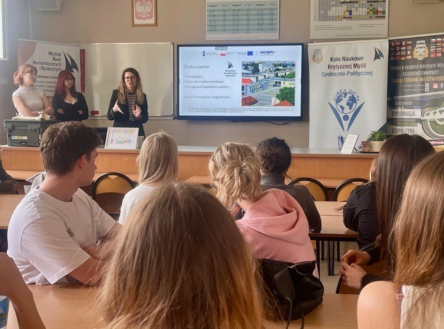 W dniu 30 maja 2025 r. uczniowie klasy 3c wzięli udział w warsztatach prowadzonych przez przedstawicieli Koła Naukowego Krytycznej Myśli Społeczno-Politycznej Aurea Dicta działającego przy Akademii Marynarki Wojennej w Gdyni.