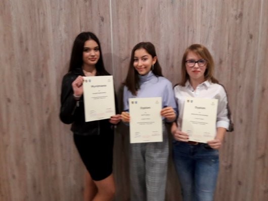 6 grudnia 2019 r. na Wydziale Neofilologii Uniwersytetu Gdańskiego odbył się wojewódzki KONKURS RECYTACJI POEZJI ROSYJSKIEJ Naszą szkołę reprezentowały uczennice klasy I: Malika Mukhametbaeva i Valentyna Korenha. Spośród 35 uczestników Malika Mukhametbaeva zajęła zaszczytne pierwsze miejsce.