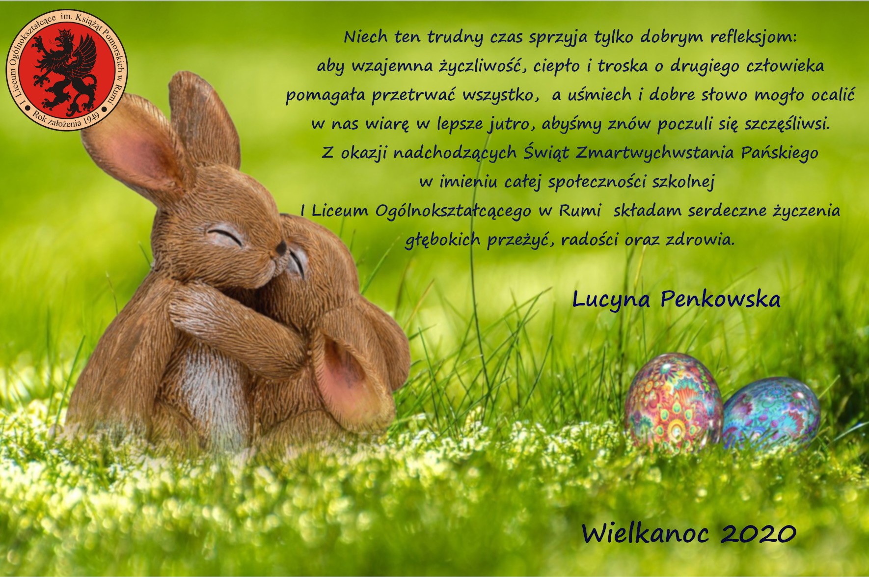 Spokojnych Świąt Narodzenia Pańskiego, urokliwego nastroju wigilijnej wieczerzy spędzonej w gronie najbliższych przy dźwiękach kolęd, zgody i pojednania ukrytych w białym opłatku, wielu radości i wzruszeń, a w Nowym Roku – optymizmu, niespożytych sił do realizacji nowych wyzwań, wiary, co góry przenosi, nadziei, która dodaje sił oraz dużo zdrowia życzy społeczność szkolna I Liceum Ogólnokształcącego w Rumi
