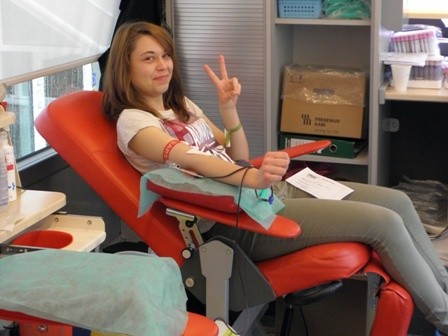 13 kwietnia 2015r. pełnoletni uczniowie I LO w Rumi po raz kolejny w tym roku szkolnym oddawali honorowo krew. I tym razem młodzież nie zawiodła. 18 osób oddało ponad 8 litrów cennego płynu. Przypomnijmy, że podczas jesiennej zbiórki, 12 listopada 2014r., zebraliśmy ponad 10 litrów krwi. Krew jest niezbędna nie tylko ofiarom wypadków, ale także cierpiącym na szereg poważnych chorób. Przetaczana podczas transfuzji lub podawana w postaci przetworzonych preparatów, pozwala ratować życie i zdrowie. Optymizmem napawa fakt, że uczniowie naszej szkoły tak aktywnie i chętnie stają się honorowymi dawcami, a wizyty krwiobusu stały się tradycją w naszym liceum. Kiedy oddajemy krew, która nas nie kosztuje, dajemy największy skarb tym, dla których jest ona ratunkiem. A krew jest najpiękniejszym darem, jaki możemy podarować drugiemu człowiekowi. Ponadto chętni uczniowie w czasie wizyty ambulansu mieli możliwość zarejestrować się jako potencjalni dawcy szpiku. Ty też możesz pomóc!