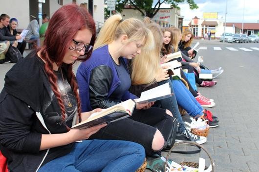 Ogólnopolska akcja masowego czytania "Jak nie czytam, jak czytam" - 10.06.2016 roku Cała społeczność I LO w Rumi wzięła udział w masowej akcji czytania książek. W tym dniu sprzed szkoły wyruszył publiczny przemarsz z książkami "na wesoło", który udał się w okolice dworca PKP Rumia. Transparenty z hasłami, przebrani uczniowie, cukierki z cytatami oraz tłum (ponad 200 osób), który tworzyli nasi uczniowie i grono pedagogiczne zwracał uwagę przechodniów i uczestników ruchu drogowego .Do akcji przyłączyła się pani Teresa Jałocha - radna Rady Miejskiej w Rumi, Przewodnicząca Komisji Kultury.