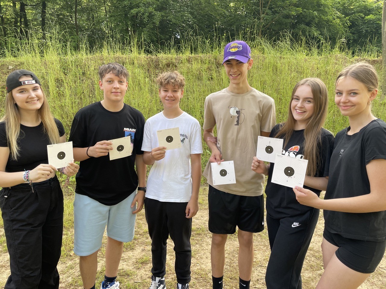 Dnia 19 czerwca 2023 r. uczniowie klas pierwszych wzięli udział w szkoleniu strzeleckim na strzelnicy w Wejherowie. Młodzież pod okiem instruktorów z Kurkowego Bractwa Strzeleckiego w Wejherowie, strzelała z karabinków pneumatycznych klasy olimpijskiej, do tarcz oddalonych o 10 m z pozycji stojącej. Ponadto uczniowie mieli możliwość zapoznania się z różnymi rodzajami broni palnej. Całość dopełniły: dobra pogoda, ognisko z kiełbaskami oraz wspólne gry i zabawy. W szkoleniu udział wzięło 174 uczniów.