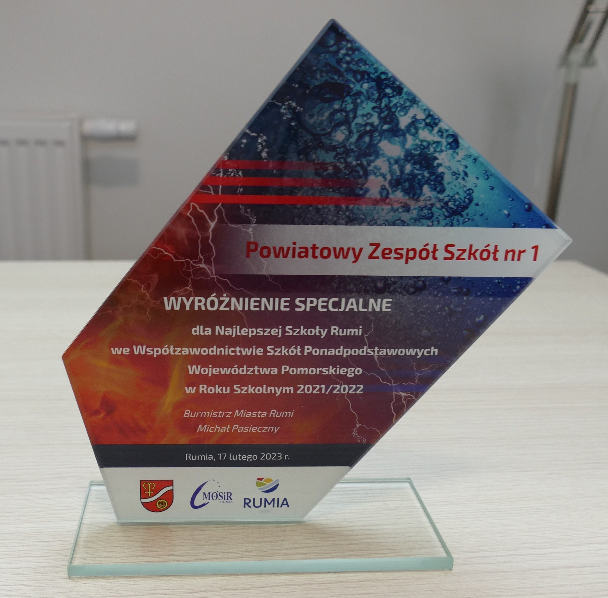 17 lutego podczas Rumskiej Gali Sportu PZS nr 1 w Rumi otrzymał wyróżnienie specjalne dla najlepszej szkoły Rumi we współzawodnictwie Szkół Ponadpodstawowych Województwa Pomorskiego w roku szkolnym 2021/2022. W imieniu społeczności szkolnej nagrodę odeprała Pani Dyrektor Lucyna Penkowska.