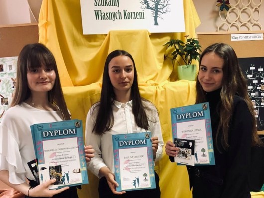 23 maja uczniowie naszej szkoły uczestniczyli w gali wręczania nagród w Powiatowym Konkursie Plastycznym "Szukamy własnych korzeni". Zadaniem młodzieży było przygotowanie drzewa genealogicznego lub kroniki rodzinnej. Nasi uczniowie zostali docenieni w obu kategoriach: Drzewo genealogiczne: I miejsce: Bartosz Niedźwiedzki Is II miejsce: Weronika Lipska Id III miejsce: Paulina Chudzik Id Wyróżnienie: Weronika Gillmeister IIc Kronika rodzinna: Dobrawa Głodkowska-Adlung Id. Opiekun merytoryczny: Monika Młynarczykowska.