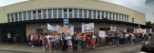 Akcja „Jak nie czytam, jak czytam”. Przemarsz uczniów pod Stacja Kultura - Biblioteka Rumia