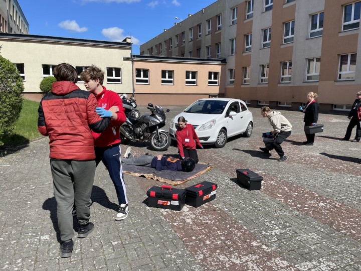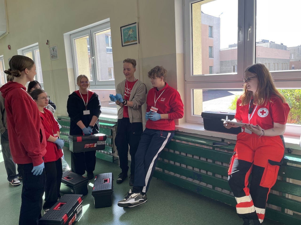 26 kwietnia 2025 r. uczniowie naszej szkoły zajęli III miejsce w rejonowych Mistrzostwach I Pomocy PCK! I LO godnie reprezentowali: Maria Król - kapitan (3c), Antonina Chaber (3c), Aleksander Skrzypiec (3e), Aleksandra Itrich (2c) i Adam Łaski (2c). Dodatkowego wsparcia i pomocy technicznej drużynie udzielała Weronika Szczepańska (3c).