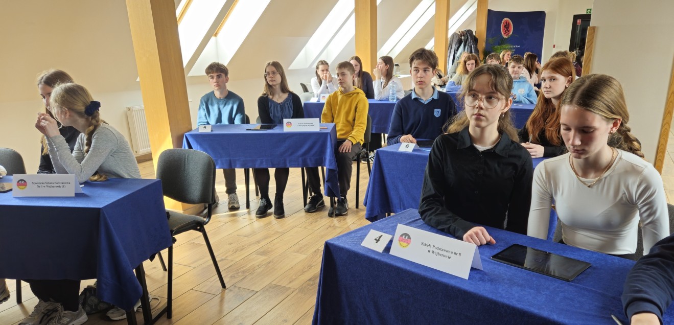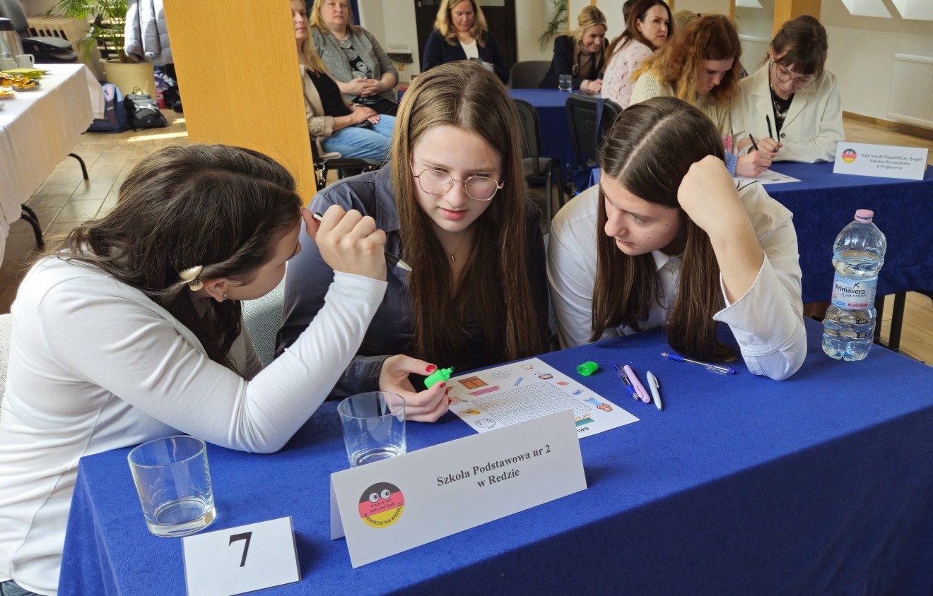 W piątek 12 kwietnia na terenie naszej szkoły odbył się II i III etap konkursu "Deutsch mit Spiel und Spaß" dla szkół podstawowych z województwa pomorskiego. W pierwszym etapie przeprowadzonym w szkołach macierzystych udział wzięło 18 trzyosobowych zespołów, spośród których do drugiego etapu zakwalifikowało się 9 drużyn. Były to następujące szkoły: Szkoła Podstawowa z Bożegopola Wielkiego, Szkoła Podstawowa Nr 8 z Wejherowa. Społeczna Szkoła Podstawowa Nr 1 z Wejherowa (dwa zespoły), Szkoła Podstawowa Nr 6 z Rumi, Naja Szkoła/ Niepubliczny Zespół Szkolno-Przedszkolny z Rumi, Podstawowa Ekologiczna Szkoła Społeczna z Rumi, Salezjańska Szkoła Podstawowa z Rumi i Zespół Szkolno-Przedszkolny nr 2 z Redy.