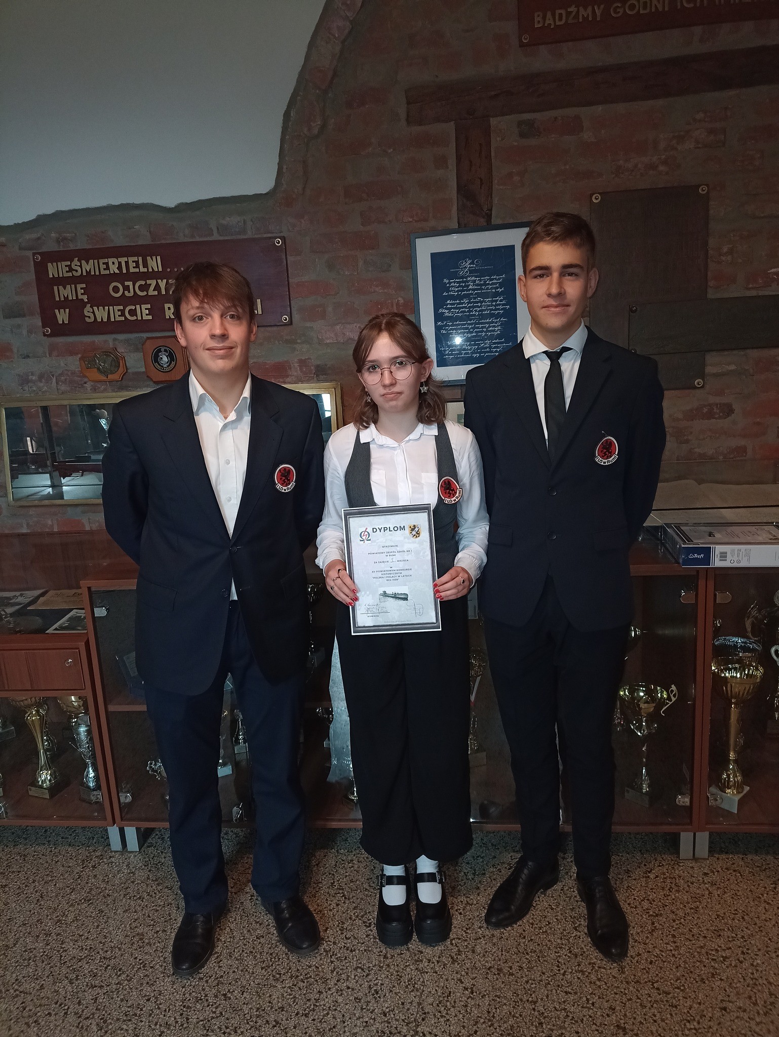W środę, 8 listopada w PZS nr 2 w Wejherowie odbył się XV Powiatowy Konkurs Historyczny "Polska i Polacy w latach 1914 - 1939". Uczniowie z 6 szkół powiatu rywalizowali w kategorii indywidualnej i drużynowej. Po rozwiązaniu testu I miejsce zajęła Martyna Hebel. Po teście i prezentacji tematycznej nasza drużyna przygotowana zajęła I miejsce. Uczniom klasy 2a: Martynie Hebel, Kacprowi Zielińskiemu i Hubertowi Trawickiemu - gratulujemy !!!