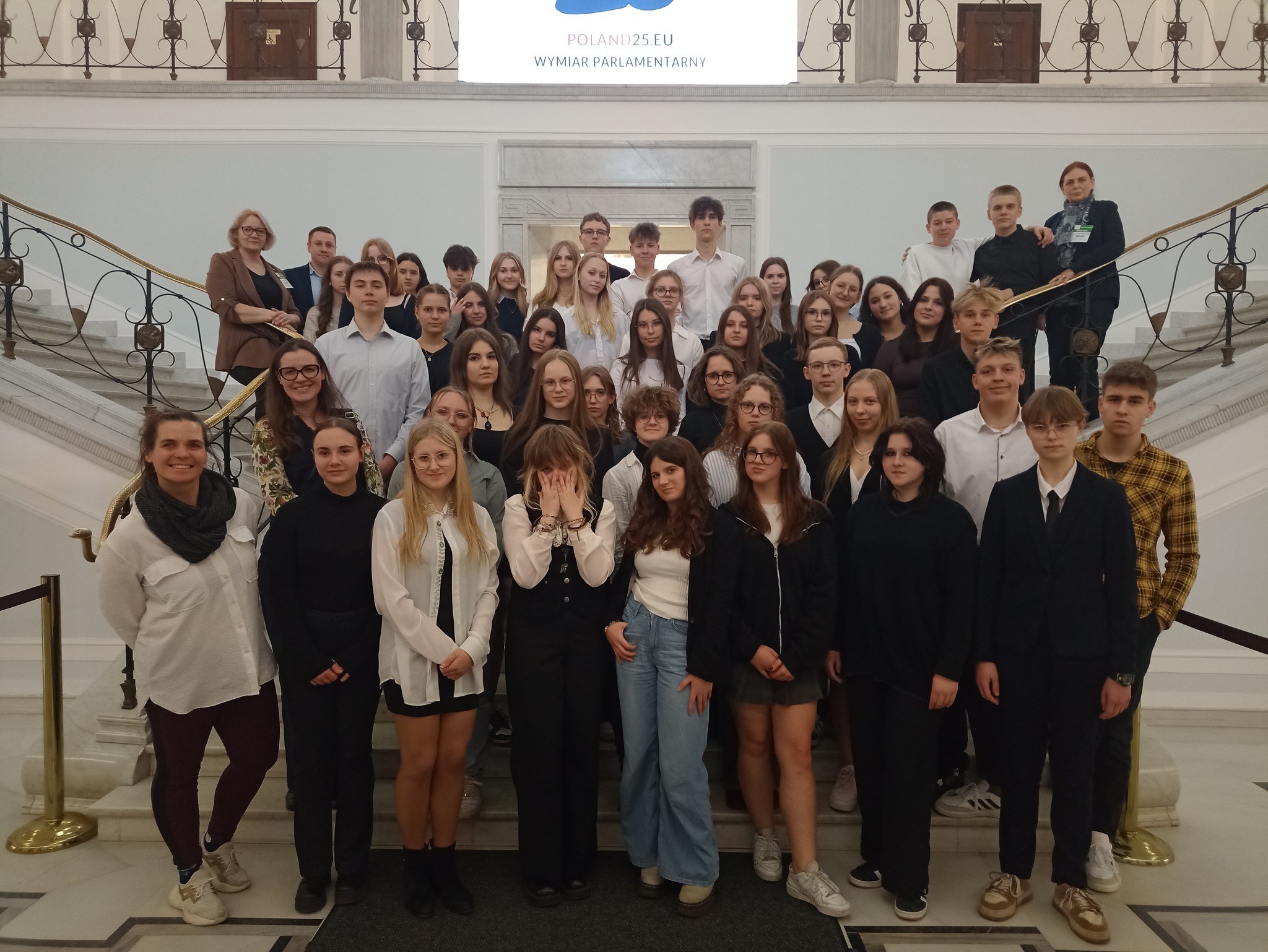 W dniach 20-21 marca, młodzież naszej szkoły wzięła udział w wycieczce do Warszawy. Pierwszego dnia odwiedziliśmy Sejm RP na zaproszenie posłanki Wiolety Tomczak. Z galerii sejmowej przyglądaliśmy się obradom sejmowym, a przewodnik i posłanka opowiedzieli o historii polskiego parlamentaryzmu i trybie pracy izby poselskiej. Wieczorem oglądaliśmy spektakl "Dziady" na deskach Teatru Narodowego. W piątek zwiedzaliśmy Muzeum Powstania Warszawskiego, a także Stare Miasto. Tego dnia byliśmy też na Wojskowych Powązkach - cmentarzu, gdzie pod brzozowymi krzyżami spoczywają powstańcy warszawscy, a także bohaterowie "Kamieni na szaniec"- Rudy, Alek i Zośka. Zapaliliśmy znicze na grobach powstańców styczniowych, warszawskich, żołnierzy bitwy warszawskiej 1920 r. i Żołnierzy Wyklętych.