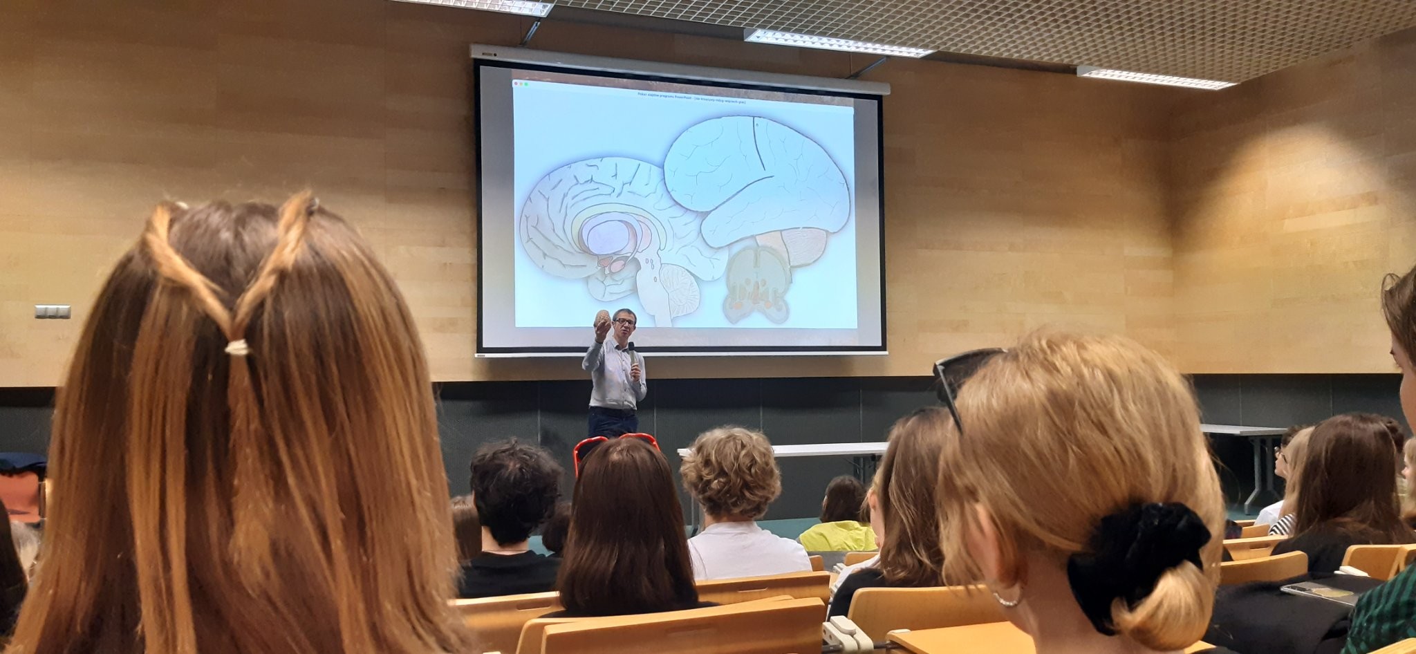 Uczennice i uczniowie z klasy o profilu psychologiczno-społecznym 9 czerwca br. mieli okazję poznać możliwości swojego mózgu w trakcie wykładu popularnonaukowego (Nie)Kreatywny mózg, zorganizowanego przez PPNT Gdynia Bio Laboratorium w ramach programu InnovaBio Pomorze. Wydarzenie poprowadził prof. Wojciech Glac - neurobiolog z Uniwersytetu Gdańskiego.