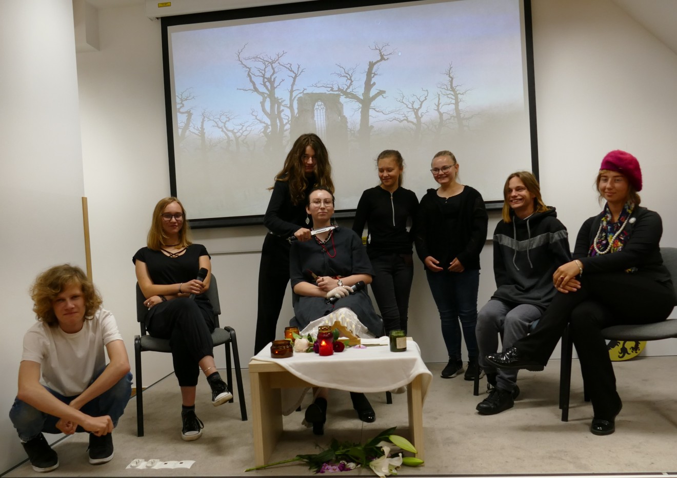 W dniu 5 września 2022 roku w Powiatowym Zespole Szkół nr 1 w Rumi odbyło się Narodowe Czytanie Ballad i romansów Adama Mickiewicza. Odpowiedzialnymi za przygotowanie tego wydarzenia byli poloniści, Pani Cecylia Ratajczak i Pan Mateusz Włodarski oraz uczniowie klas: II a, II d, II e oraz III a. Przygotowany został specjalny wystrój sali konferencyjnej tak, aby stworzyć romantyczna aurę stanowiącą tło dla interpretacji ballad. Wybrane zostały dwie ballady: Romantyczność i Lilije, które uczniowie klas drugich i trzeciej zaprezentowali uczniom klas pierwszych. Po czytaniu odbyła się dyskusja na temat uczniowskich prezentacji, najciekawszych postaci i obecności balladowych motywów w kulturze współczesnej. Na koniec zaprezentowano uczniom klas pierwszych krótki film na podstawie znanej im ze szkoły podstawowej ballady Świtezianka. Wydarzenie zostało utrwalone przez szkolną TeLOwizję oraz w formie sesji fotograficznej.