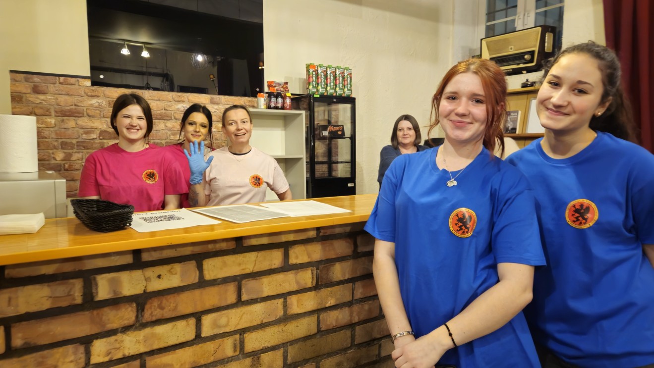 Zmęczeni rodzice znaleźli chwilkę wytchnienia w szkolnej kawiarence, gdzie w ciszy i miłej atmosferze mogli wypić kawę oraz zjeść gofra upieczonego przez nasze uczennice.