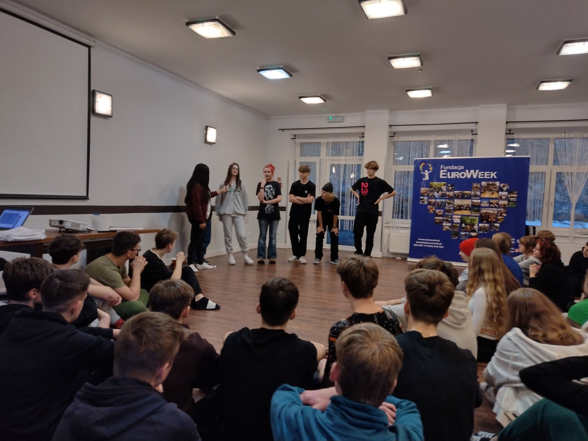 Klasa 1h wraz z nauczycielkami j. angielskiego p. Katarzyną Pucyło i p. Lucyną Lipińską brała udział w obozie EuroWeek - Szkoła Liderów w terminie 7 marca -11 marca 2023r. Obóz odbył się w Międzygórzu na Ziemi Kłodzkiej. Program EuroWeek - Szkola Liderów jest specjalnym obozem edukacyjnym pozwalającym młodym ludziom aktywnie włączyć się w życie demokratycznego społeczeństwa dzisiejszej Europy. Obóz rozwija najbardziej cenione w chwili obecnej umiejętności społeczne: przewodzenie, autoprezentacja oraz pracę w zespole. Zajęcia prowadzone są w języku angielskim przez wykwalifikowanych animatorów z całego świata, m.in.: Filipin, Gruzji, Zimbabwe, Włoch, Peru, Meksyku, Albanii.