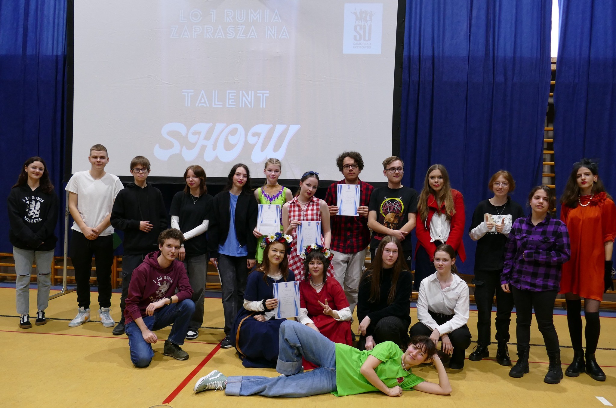 21 marca, w pierwszy dzień wiosny, nasi uczniowie jak co roku mieli okazję zaprezentować swoje talenty oraz pokazać swoje kreatywne oblicze. Wszystko dzięki Talent Show, konkursowi zorganizowanemu przez Samorząd Uczniowski. W tym roku, zgłosiło się 11 osób, które pokazały jak wspaniałe i różnorodne talenty posiadają. Wśród występów nie zabrakło śpiewu, tańca i umiejętności aktorskich, jak również jazdy figurowej na rolkach, układania kostki Rubika i …. tańca brzucha!!! Uczniowie zostali porwani do odtańczenia wspólnej Belgijki, która została wykonana w języku polskim przy akompaniamencie trzech instrumentów. Zwycięzcami konkursu zostali uczniowie, którzy w niezwykle ekspresyjny sposób wykonali utwór grupy Pink Floyd na perkusji, keyboardzie i gitarze elektrycznej.