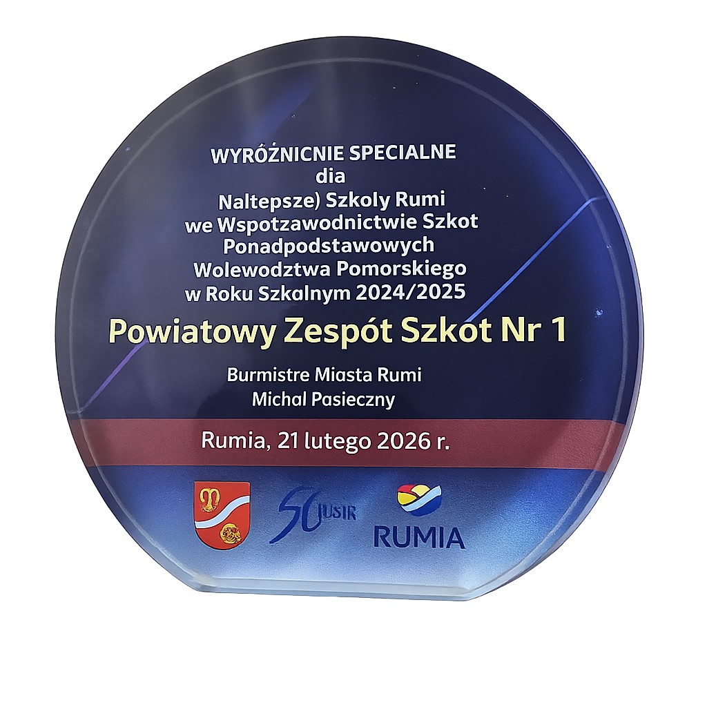 Nasza szkoła została wyróżniona w kategorii dla najlepszej szkoły Rumi we współzawodnictwie Szkół Ponadpodstawowych Województwa Pomorskiego w roku szkolnym 2024/2025.