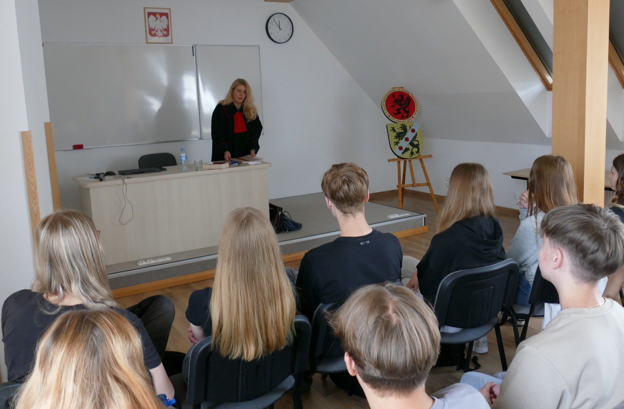 W środę, 12 czerwca uczniowie klas 2a, 3a, 3f wzięli udział w spotkaniu z prokurator Magdaleną Patzer-Klawikowską. Zwłaszcza dla uczniów klas prawniczo-administracyjnych było to cenne wydarzenie, które może ich zachęcić do wybrania ciekawego i odpowiedzialnego zawodu prokuratora. Słuchacze mogli poznać szczeble kariery prawniczej, obowiązki i kompetencje zawodu prokuratora.