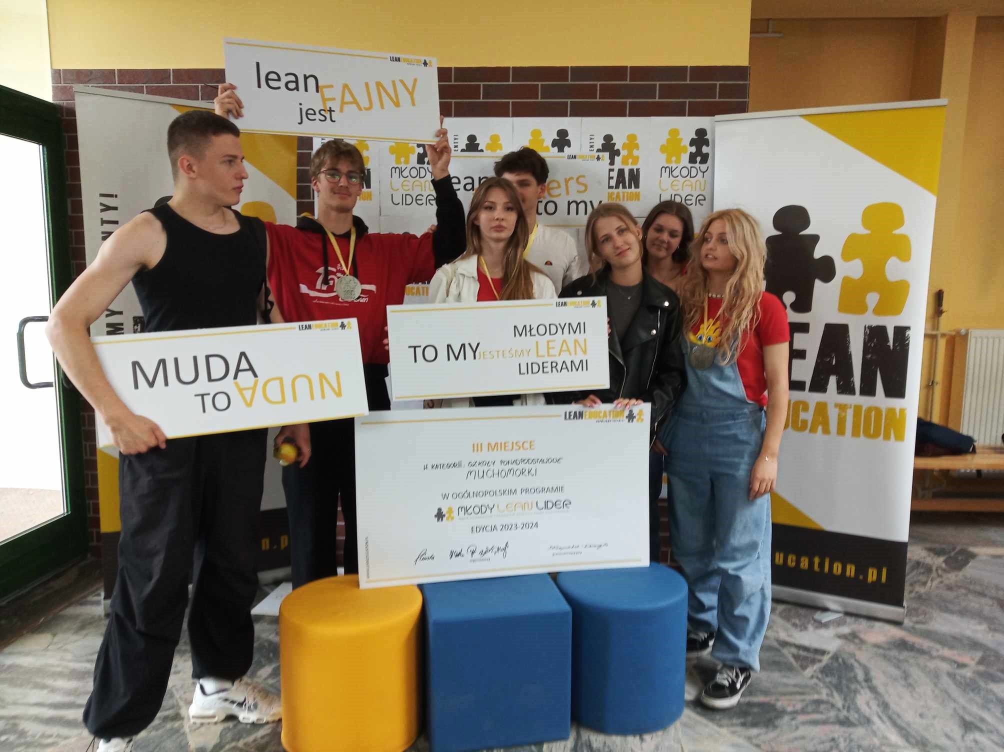 10 czerwca uczennice i uczniowie z klas 2h, 3a i 4e pod opieką pani Katarzyny Pucyło wzięli udział finale ogólnopolskiego programu Młody Lean Lider, który odbył się w Sopocie na Wydziale Ekonomicznym Uniwersytetu Gdańskiego. Reprezentująca naszą szkołę grupa Muchomorki w składzie Małgorzata Osiowy, Agata Koziczkowska, Katarzyna Żera, Emilia Gumińska, Patryk Gmiński, Maciej Łukowicz i Szymon Nowicki zaprezentowała efekty dziewięciomiesięcznej pracy w projekcie zajmując 3 miejsce. Dzięku udziałowi w projekcie nasi uczniowie i uczennice, oprócz wiedzy na temat zarządzania w stylu Lean, mogli poćwiczyć w praktyce najważniejsze umiejętności, które poszukiwane są obecnie na rynku pracy takie jak współpraca, kreatywne myślenie, rozwiązywanie problemów czy krytyczne myślenie. Nasi reprezentanci wypadli bardzo dobrze i jesteśmy dumni, że projekt zakończyli z brązowymi medalami, pokonując po drodze w sumie prawie 90 zespołów z całej Polski zgłoszonych w tym roku do projektu.