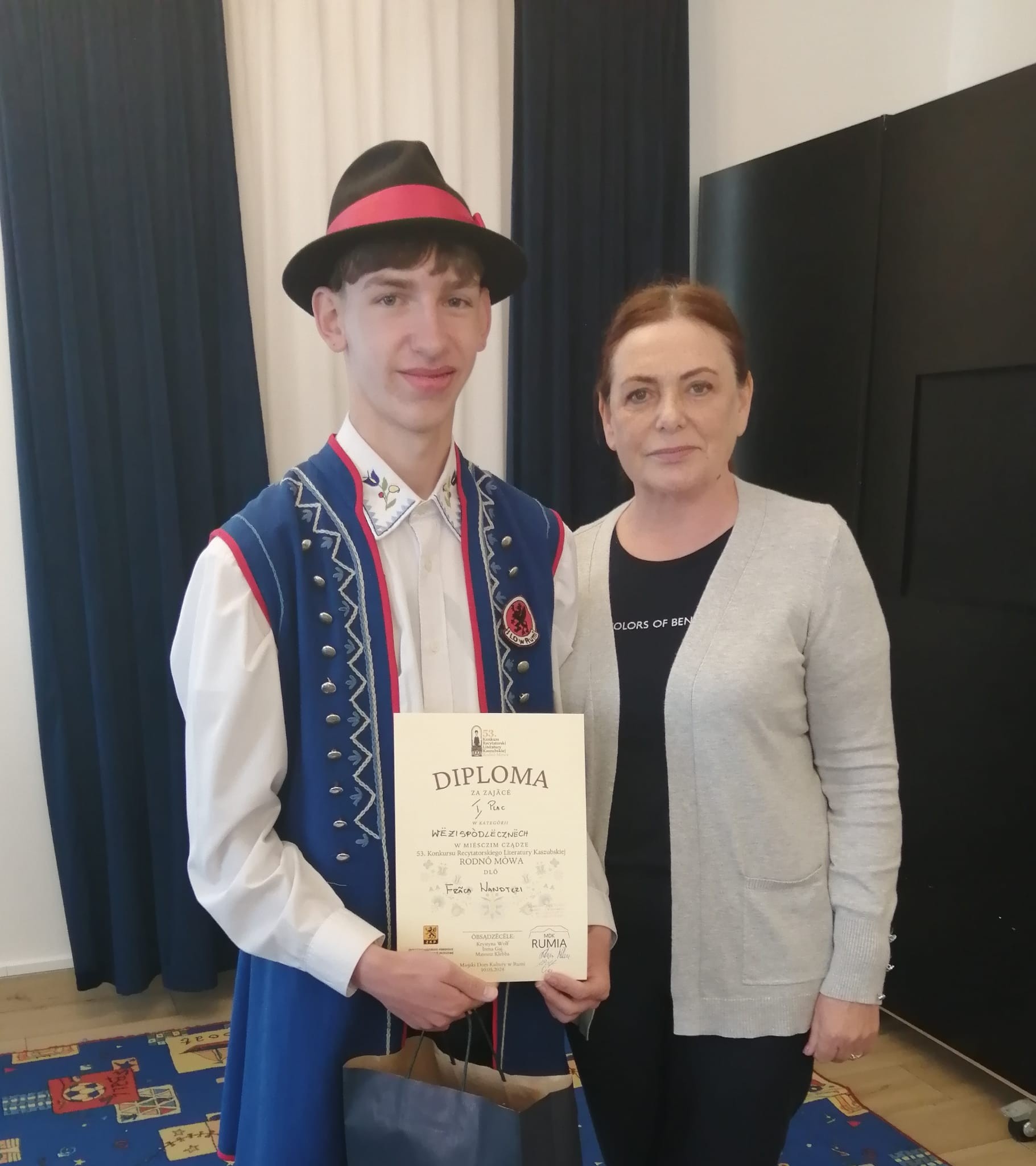 W dniu 10 maja 2024 roku, w Domu Kultury w Rumi, odbyły się eliminacje miejskie do 53. Konkursu Recytatorskiego Literatury Kaszubskiej RODNÔ MÒWA. Naszą szkołę reprezentował Franciszek Wandtke z klasy III a, który przedstawił utwór Jana Piepke „ Òddalenié” oraz obszerny fragment prozy Eugeniusza Pryczkowskiego „Kwiôt parpacë”.