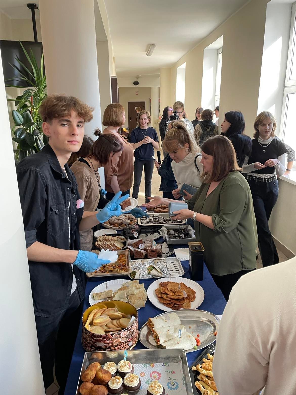 4 października z okazji Światowego Dnia Zwierząt w naszej szkole odbył się kiermasz produktów wegetariańskich i wegańskich. Dochód ze sprzedaży przyniesionych przez uczniów ciast i przekąsek został przekazany na pomoc zwierzętom przebywającym w schronisku Dąbrówka. Po przeliczeniu pieniędzy zebranych do puszki okazało się że uzbieraliśmy aż 998zł i 40 gr. Dodatkową okazją do pomocy zwierzętom była zbiórka karmy dla psów i kotów. Worków z suchym pożywieniem, puszek i psich przysmaków zebrała się całkiem pokaźna górka.