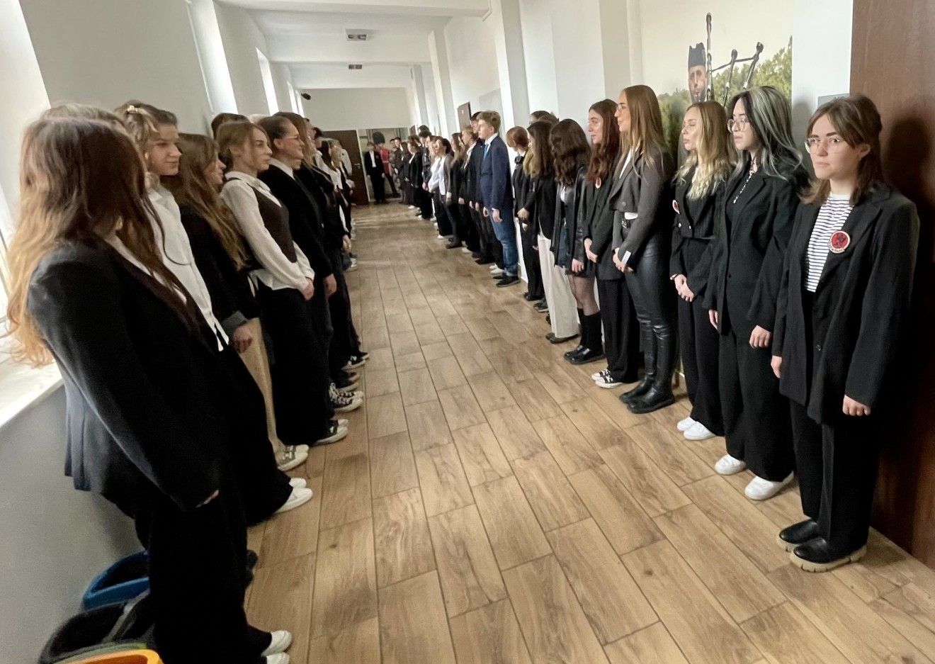Punktualnie o 11:11 na szkolnych korytarzach wybrzmiał Mazurek Dąbrowskiego, który został radośnie i dumnie odśpiewany przez uczniów i pracowników.
