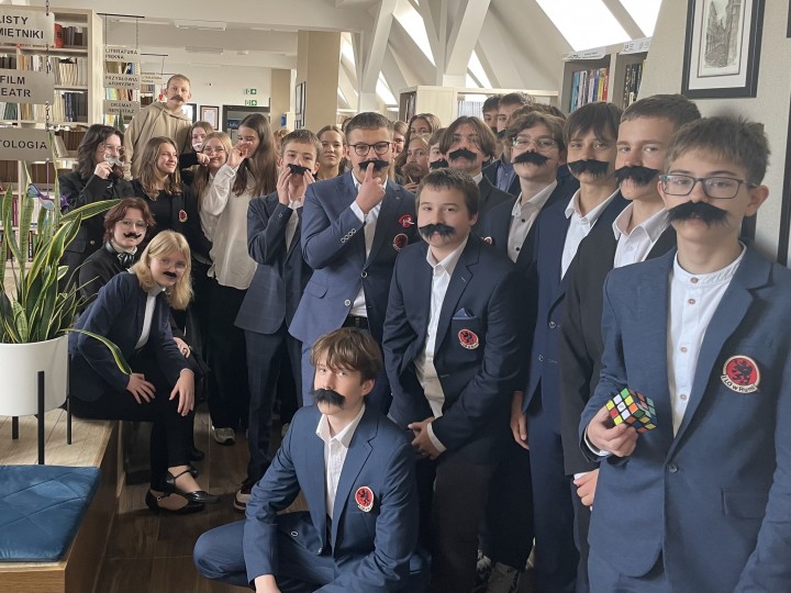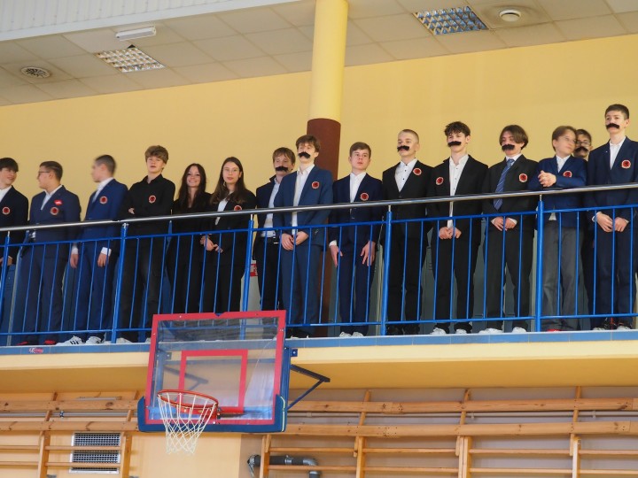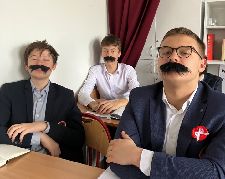 Przedstawiciele klas 1 mieli okazję rywalizować o miano właścicieli najbardziej okazałych wąsów- to na cześć Józefa Piłsudskiego.