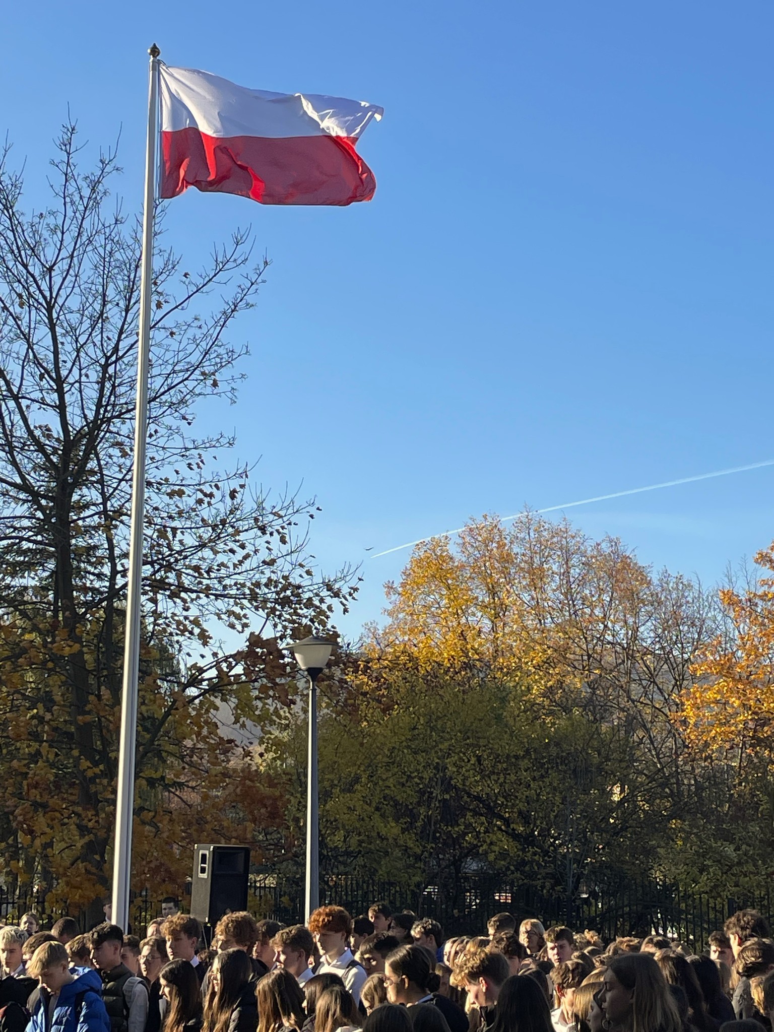 O 11.11 na dziedzińcu przed szkołą cała społeczność odśpiewała hymn. Następnie odbyła się inscenizacja słowno-muzyczna przygotowana przez grupę uczniów z grupy teatralnej oraz chóru pod kierunkiem pań Joanny Pieper, Joanny Klein-Szalkowskiej i Aleksandry Prudzienicy-Piotrowicz.