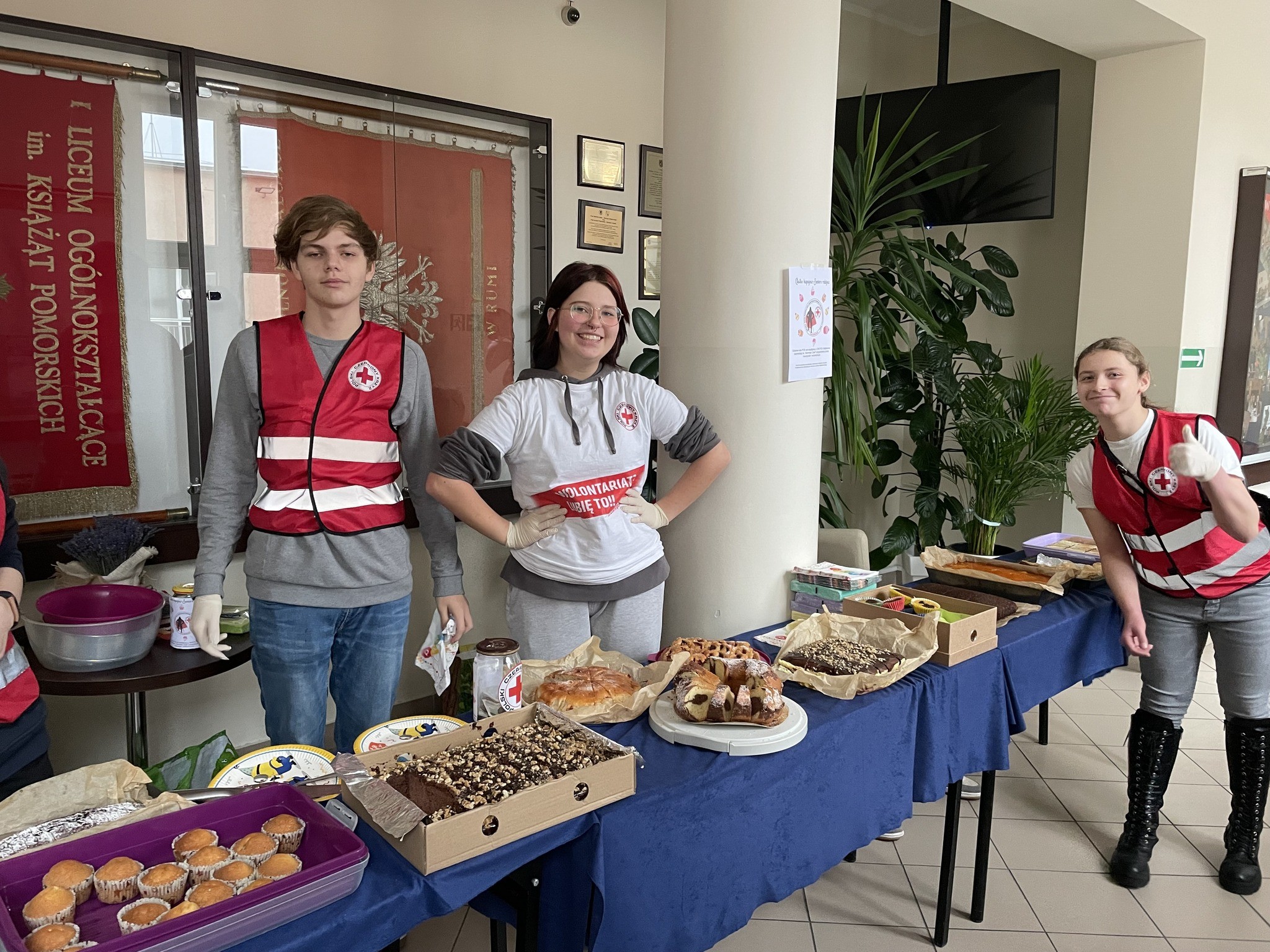 Za organizację, przygotowanie i sprzedaż słodkości odpowiadało Szkolne Koło PCK oraz chętni wolontariusze. Zebrane pieniądze zostaną przekazane na paczki świąteczne dla potrzebujących seniorów powiatu wejherowskiego.