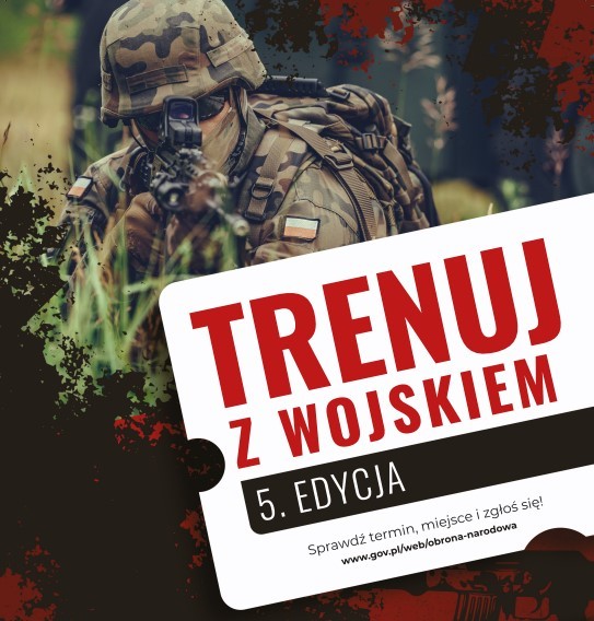 Ministerstwo Obrony Narodowej organizuje kolejną edycję – 5! projektu ”Trenuj z Wojskiem 5”. Jest to podstawowe, krótkie (8-godzinne), bezpłatne, sobotnie szkolenie wojskowe. Prowadzone w jednostkach wojskowych przez wykwalifikowany personel wojskowy. To inicjatywa prospołeczna i proobronna. Plan szkolenia zakłada nabycie podstawowych umiejętności związanych z bezpieczeństwem i obronnością – posługiwanie się bronią/strzelanie na trenażerze, przetrwanie, zachowanie podczas alarmów, walkę wręcz, rzut granatem, itd. Wojskowi instruktorzy zapoznają w trakcie zajęć wszystkich chętnych z podstawami: obsługi broni, zasad przetrwania, walki w bliskim kontakcie, pomocy medycznej, zachowania podczas alarmu i wielu innych. Na 8 godzinne szkolenie można się zgłosić w każdej chwili i w dowolny sposób – wystarczy imię, nazwisko, wiek i kontakt. Szkolenie jest dedykowane chętnym w wieku 15 do 65 lat z polskim obywatelstwem.