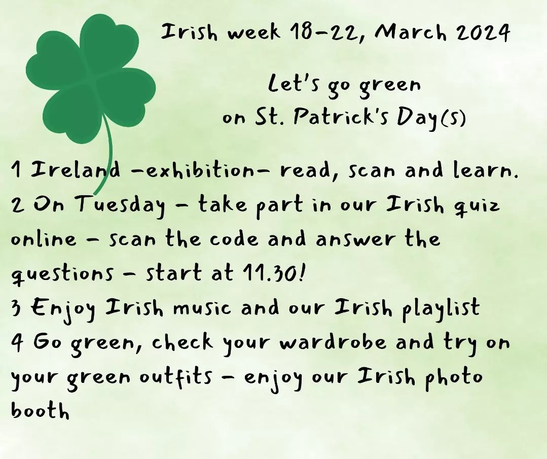 We wtorek pojawią się plakaty z kodem QR do quizu na temat Irlandii - zachęcamy do zabawy. Test dostępny tylko we wtorek, po zalogowaniu.