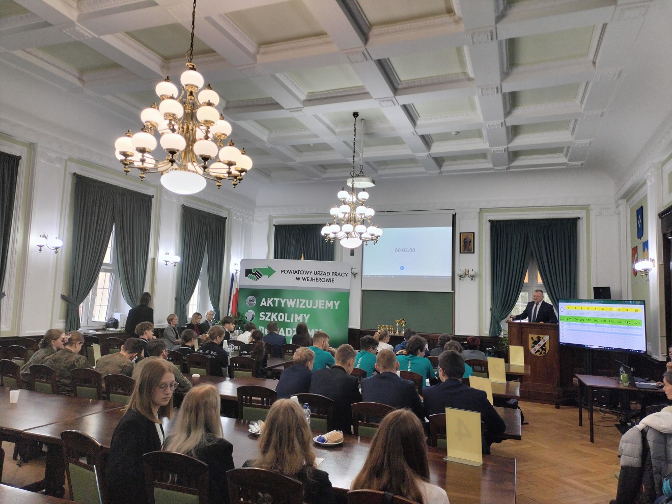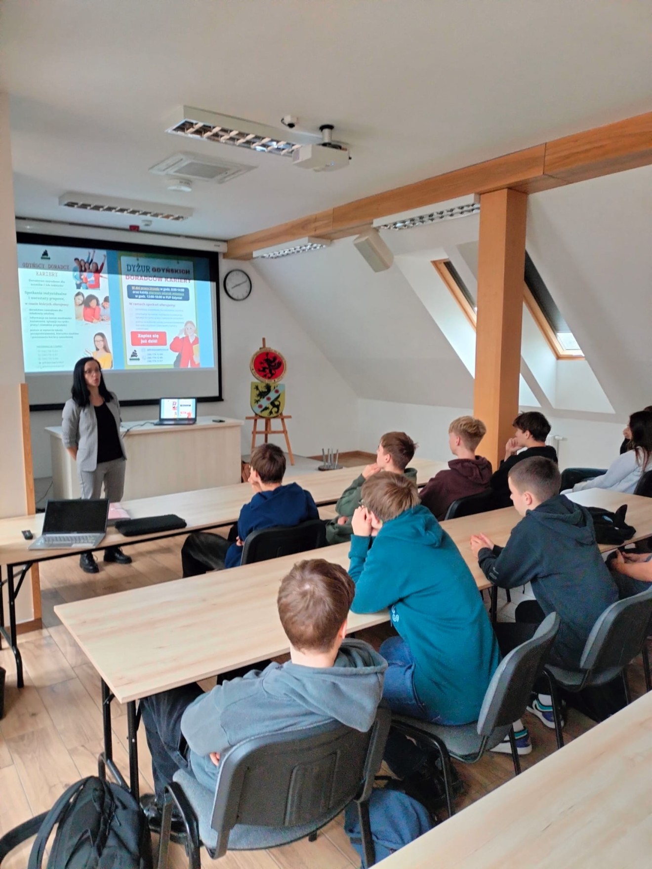 Dodatkowo we współpracy z Powiatowym Urzędem Pracy w Gdyni dla naszych ucznów został poprowadzony wykład przez Doradcę Zawodowego Panią Monikę Grzelak pt." Pracownicy młodociani na rynku pracy. Moja pierwsza praca". Spotkanie miało na celu zainspirować ucznów do podejmowania pracy już w młodym wieku oraz podejmowania przemyślanych decyzji dotyczących zakładania własnej działalności gospodarczje.