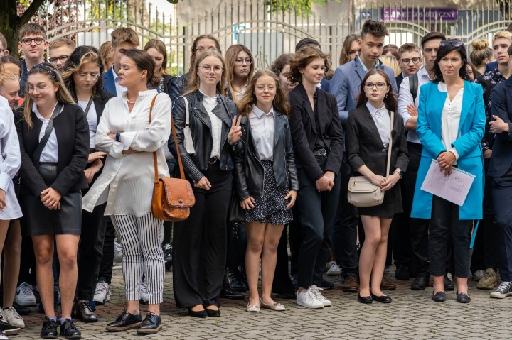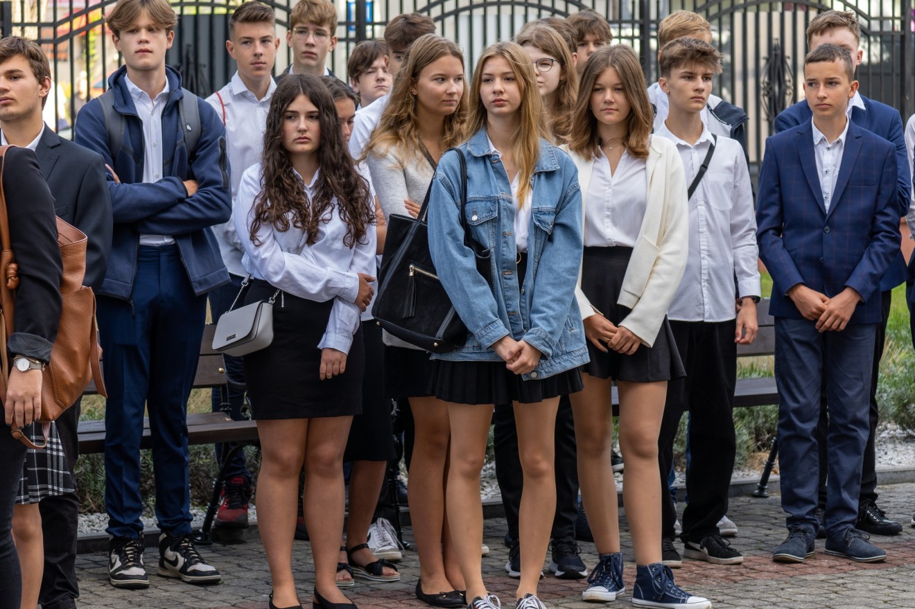 Tradycyjnie 1 września spotkaliśmy się na dziedzińcu szkoły, żeby powitać nowy rok szkolny. Uroczystość odbyła się w dwóch turach - o godzinie 09.00 przybyli uczniowie klas pierwszych, których w tym roku szkolnym powstało aż osiem. Pierwszoklasistów w krótkim przemówieniu przywitała Pani Wicedyrektor, Aleksandra Tramer, która przedstawiła im wychowawców oraz innych nauczycieli, a także odczytała przygotowany przez MEN zestaw priorytetów edukacyjno-wychowawczych na rok szkolny 2022/2023. O godzinie 10.00 odbyło się uroczyste rozpoczęcie roku szkolnego dla klas II, III i IV. Tym razem głos zabrała Pani Wicedyrektor, Tatiana Łapińska, witając uczniów, rodziców i pracowników szkoły i zapoznając wszystkich zebranych z ministerialnymi priorytetami edukacyjno-wychowawczymi na nadchodzący rok szkolny.