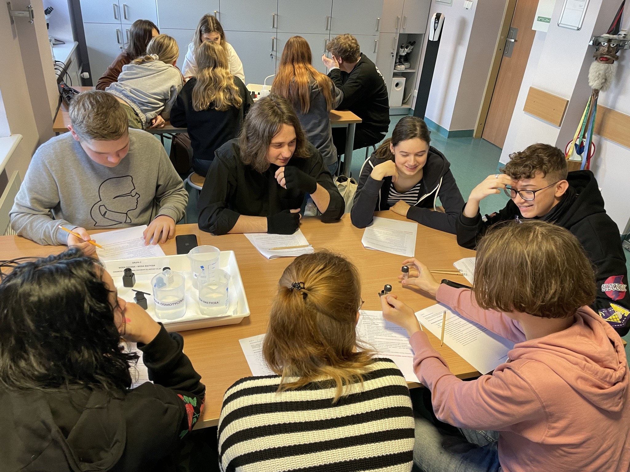 Uczniowie poznali jakie parametry wody z Morza Bałtyckiego monitoruje się i jak mają się one do właściwości innych mórz oraz oceanów. Dowiedzieli się jaki jest wpływ zanieczyszczeń wody i zmian klimatycznych na florę i faunę żyjącą w naszym morzu. Kolejnym elementem były zajęcia laboratoryjne, podczas których samodzielnie zbadali próbki wody z naszego morza oraz wody z akwarium. Zweryfikowali stężenia azotanów, fosforanów, pH oraz zasolenia i twardość ogólną wody. Jednym z wniosków płynących z badań było wskazanie ryzyka eutrofizacji wody poprzez podniesiony poziom substancji biogennych.