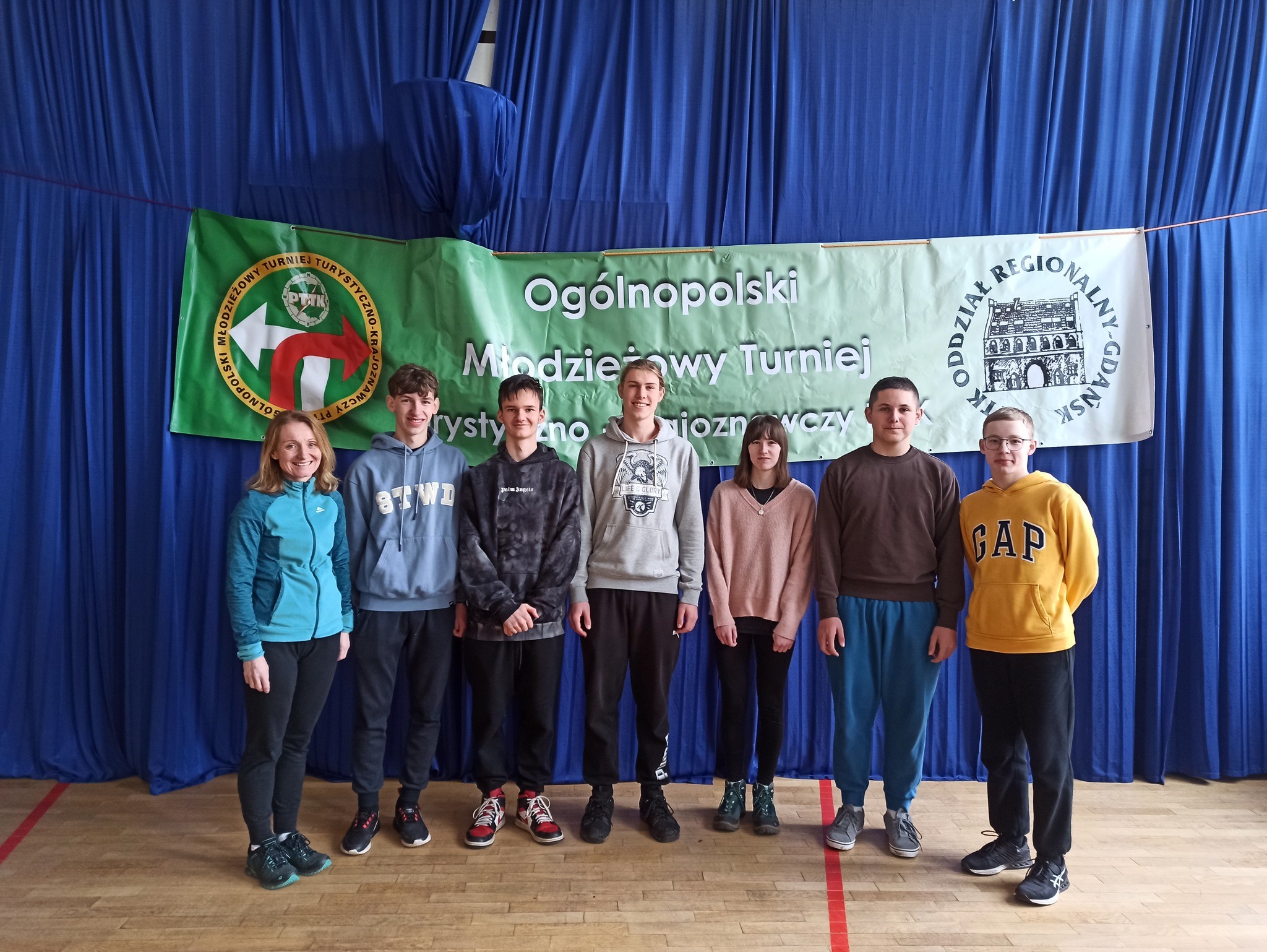 4 kwietnia 2024 r. uczniowie naszej szkoły wzięli udział w Ogólnopolskim Młodzieżowym Turnieju Turystyczno Krajoznawczym zajmując I i II miejsce w klasyfikacji ogólnej. Uczestnicy konkursu musieli wykazać się wiedzą krajoznawczą, turystyczną i topograficzną, umiejętnością jazdy na rowerze, udzieleniem pierwszej pomocy jak również dokonywaniem pomiarów terenowych bez użycia przyrządów mierniczych. Hanna Węglewska i Franciszek Wandtke zostali dodatkowo wyróżnieni za najlepiej napisany test wiedzy.