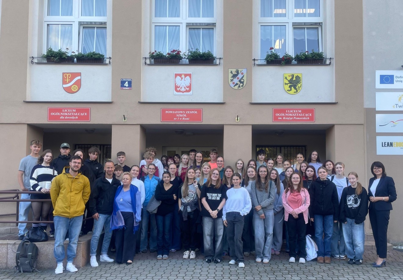 W dniach od 18 do 26 września 2025r. gościliśmy młodzież z niemieckiego liceum z miasta Lauf an der Pegnitz, która przyjechała do nas ze swoimi nauczycielami Panem Markusem Denka oraz Panem Mathiasem Ziegler, wymianą koordynowała Pani Alicja Klein- Abramczyk przy wsparciu Pani Dyrektor Lucyny Penkowskiej oraz Pani Edyty Delekty. Uczniowie uczestniczyli w zajęciach lekcyjnych, mieli możliwość poznania naszego pięknego regionu, dzięki licznym wycieczkom. Zwiedzili Gdańsk, Puck - gdzie mieli możliwość żeglowania, byli w muzeum II Wojny Światowej, popłynęli statkiem na Westerplatte, ponadto spragnieni morza mieli sposobność odwiedzenia Łeby, po spacerze wydmami , korzystając z pięknej pogody niektórzy wykąpali się w morzu. W czwartek wspólnie z młodzieżą polską pojechali na spływ kajakowy rzeką Piaśnicą, po czym odbyło się uroczyste pożegnanie w restauracji Pompa oraz podsumowanie projektu. W piątek rano z żalem pożegnaliśmy naszych gości, ciesząc się jednak już na naszą rewizytę w czerwcu.