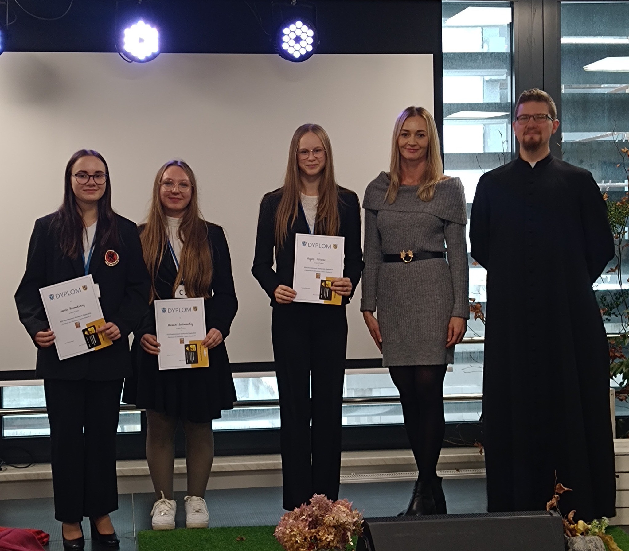 W piątek, 22 listopada odbył się XVII Powiatowy Konkurs Papieski - Światowe Dni Młodzieży z Janem Pawłem II. Uczennice klasy 2a : Amelia Rzemińska, Agata Cichosz i Weronika Arciszewska zajęły I miejsce . I miejsce indywidualnie zajęła Amelia Rzemińska. Dziewczyny w pierwszym etapie napisały test dotyczący życia i pontyfikatu Jana Pawła II oraz Światowych Dni Młodzieży, a w drugim etapie odpowiadały wspólnie na pytania o tematykę Światowych Dni Młodzieży za czasów pontyfikatu Papieża - Polaka.
