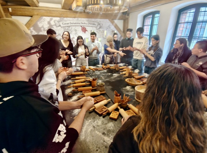 W dniach 16-20 marca 2026r. nasze szkolne korytarze wypełnił radosny gwar języka włoskiego! Już po raz trzeci mieliśmy ogromną przyjemność gościć grupę młodzieży z zaprzyjaźnionej szkoły IISS MAJORANA w Martina Franca. Był to czas pełen wzruszeń i budowania relacji – młodzi Włosi zamieszkali w domach uczniów, których sami gościli w słonecznej Apulii w październiku ubiegłego roku. Wyjątkowy charakter tej wizyty podkreśliła obecność pani dyrektor Anny Marii Gabrielli Mele, która znalazła się w gronie opiekunów. Program tygodnia był niezwykle intensywny. Wspólnie odkrywaliśmy uroki Trójmiasta oraz gotycki klimat Torunia. Nie zabrakło zabaw językowych i quizów, które udowodniły, że dla młodych Europejczyków bariery nie istnieją. Uczniowie doświadczyli też emocji podczas turnieju gry laserowej w Zoltarze. Niezmiernie cieszy nas fakt, że nasi uczniowie mogą doświadczać „europejskiego wymiaru” edukacji z pierwszej ręki. Takie spotkania to coś więcej niż zwiedzanie – to lekcja tolerancji, otwartości i przyjaźnie, które często zostają na całe życie.
