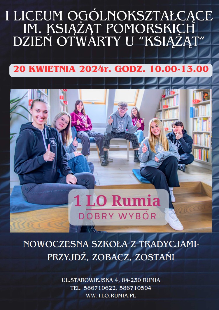 W dniu 20. 04 .2024 (sobota) w I Liceum Ogólnokształcącym w Rumi odbyły się Dni Otwarte dla uczniów klas 8. W tym dniu odwiedziło nas mnóstwo młodych osób, które były zainteresowane edukacją w naszej szkole..