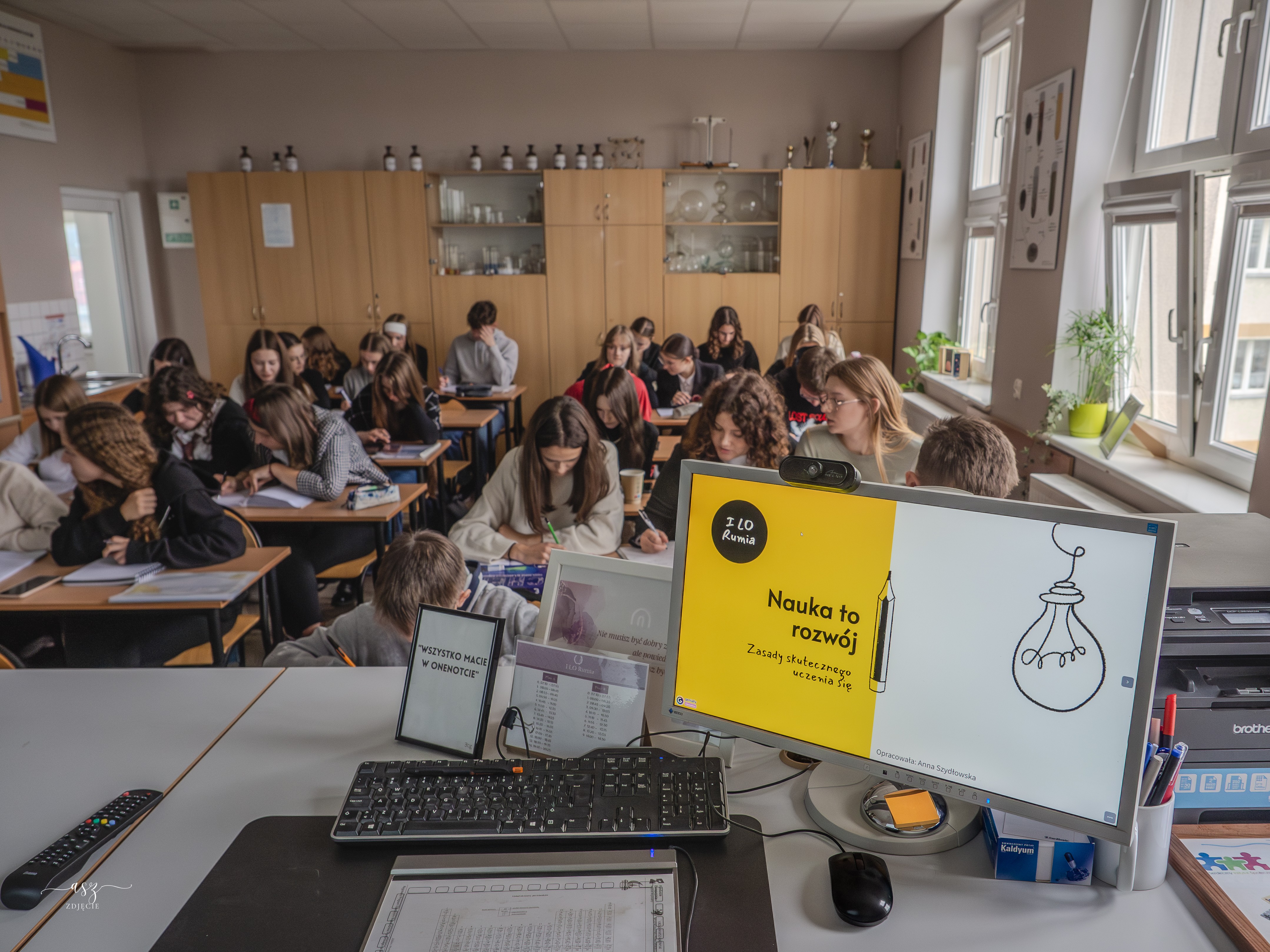 Po maturzystach przyszła kolej na uczniów klas pierwszych. W ubiegłym tygodniu mieli oni okazję uczestniczyć w szkoleniu dotyczącym zasad skutecznego uczenia się. Rozmawialiśmy o tym czym jest proces uczenia się i co dzieje się w naszym mózgu w trakcie tego procesu, a także jakie aspekty wpływają na długotrwałe zapamiętywanie kształconych umiejętności i wiedzy . Zwróciliśmy również uwagę na potrzebę zaskakiwania swojego mózgu i unikania monotonii w nauce.